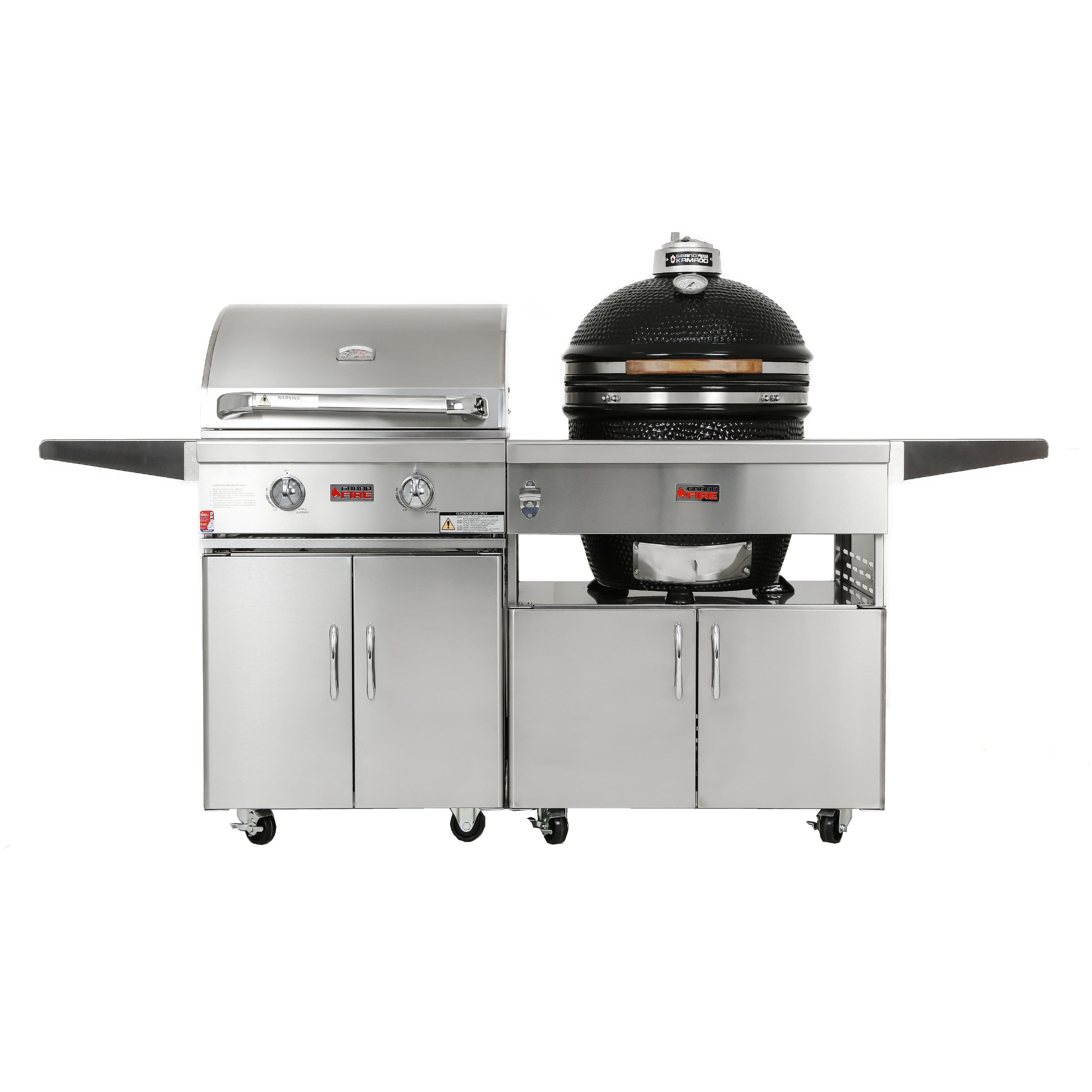 This Combo comes standard with a 23" Kamado paired with a Classic 26” Gas BBQ, but the setup is fully customisable – choose any gas BBQ size from the Grandfire range to suit your space and cooking style.
