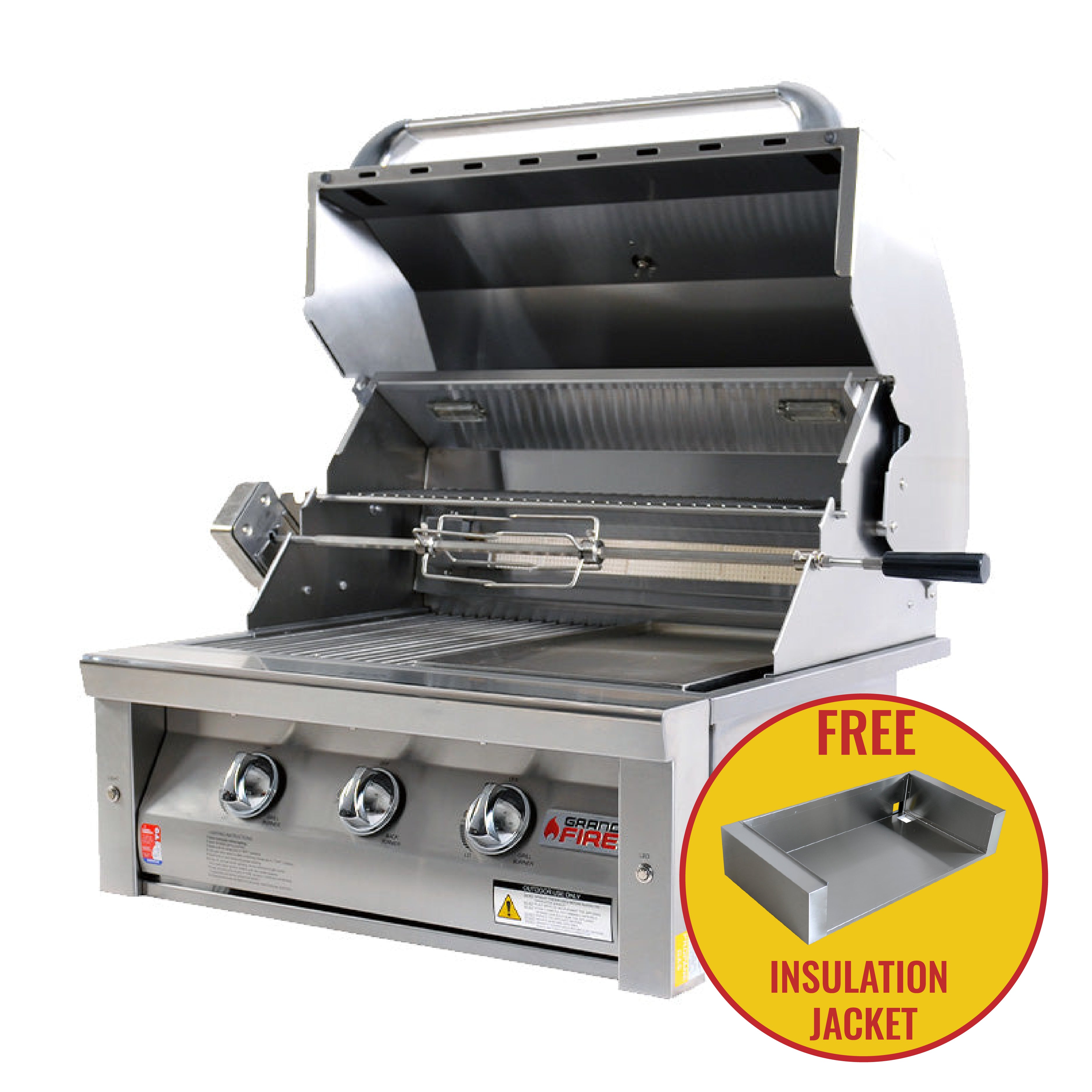 - Pre-built rotisserie system for adding an optional rotisserie kit